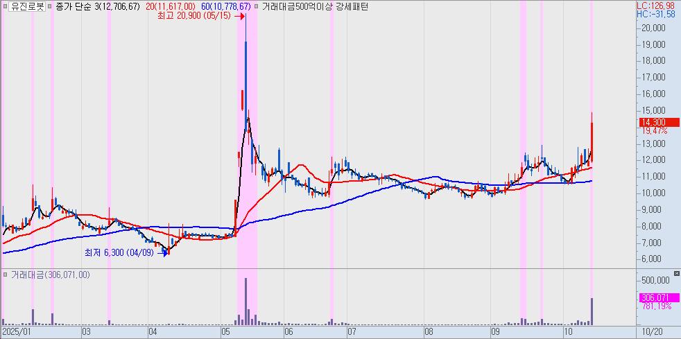 주가 흐름 자동화 기대 확대로 강한 상승 구간을 경험했습니다. 테마의 선봉에 섰던 시기에는 가격과 거래대금이 동시에 확대되는 전형적 테마 랠리를 보였습니다.