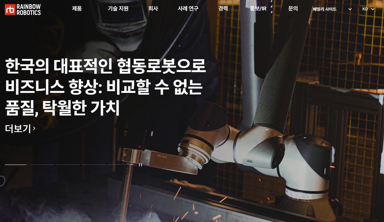 레인보우로보틱스는 2011년 카이스트 휴보연구소 연구진이 설립한 국내 대표 로봇 전문기업으로, 산업용 협동로봇과 서비스용 로봇, 그리고 자동화 솔루션을 주력으로 하고 있습니다.