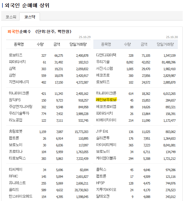 최근 젠슨 황(엔비디아 CEO)의 한국 방문과 “AI와 로보틱스의 미래는 한국이 주도할 것”이라는 발언이 국내 로봇주 전반의 상승 모멘텀으로 작용했습니다. - ③ 수급 요인