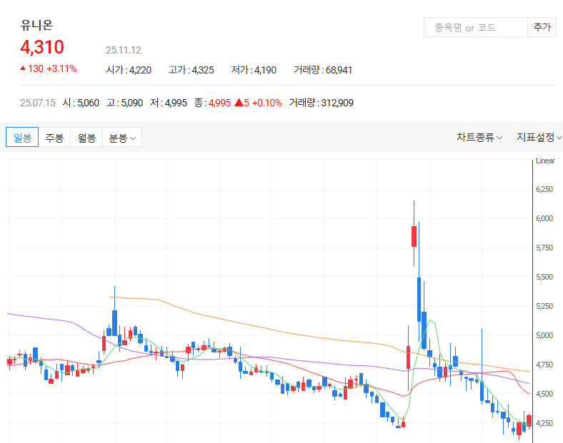 | ① | 유니온 (000910) | 희토류 정제 및 대체소재 사업을 영위. 자회사 ‘유니온머티리얼’을 통해 희토류 자석소재 생산. | 국내 대표 희토류 테마 대장주. 실적 연동성 높음. |