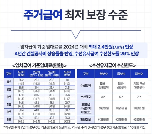 - 주거급여: 전월세 지원금 지급