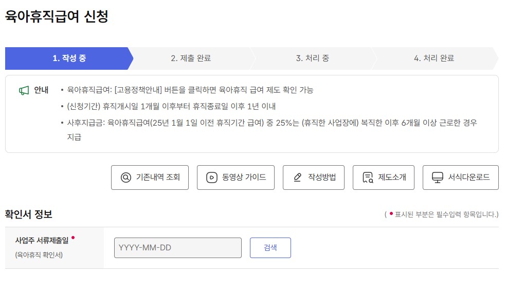 신청 기한 준수: 육아휴직 급여는 육아휴직 개시일로부터 1년 이내에 신청해야 합니다.