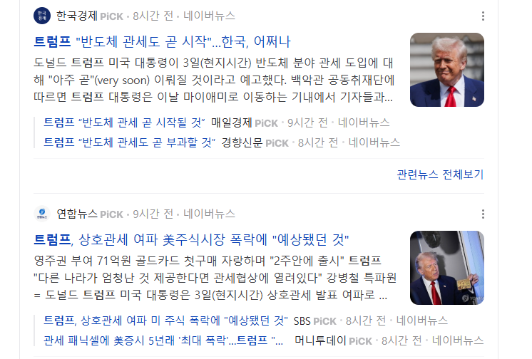 - 트럼프는 한국 제품(전자, 자동차 등)에 25%의 상호관세 부과 발표