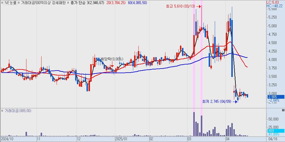 NE능률은 교육 업종에 속하면서 보수 정치권의 교육 정책 언급 시 테마 수급이 유입됐던 종목이에요.