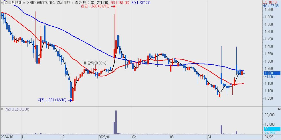 - 강동씨앤엘 (198440) - 국내 상위 시멘트 업체. 인프로 복구 자재 공급 기대주