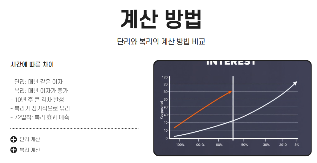 복리는 원금뿐만 아니라 발생한 이자에도 다시 이자가 붙는 방식입니다. 즉, 시간이 길어질수록 더 큰 이익을 가져옵니다.